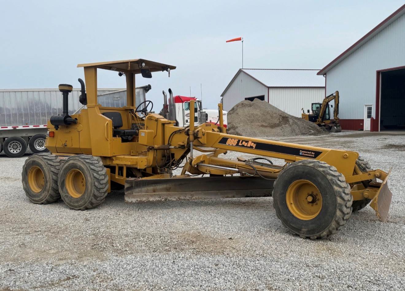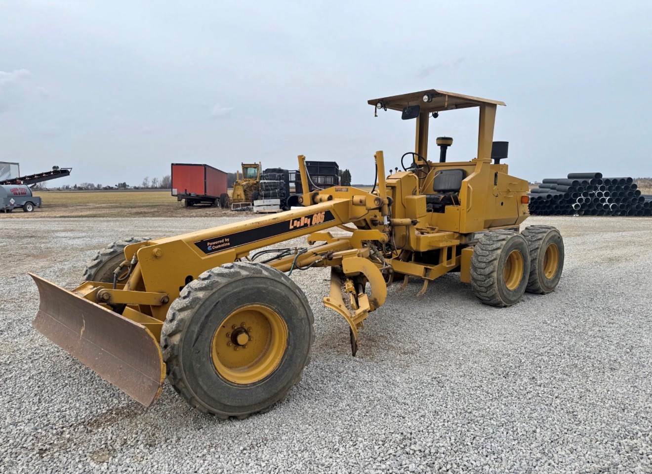 1998 Leeboy 685 motor grader. Cummins engine. Hydrostatic drive, articulating frame, 15,100 pounds. 10 moldboard, scarifier, front push blade, 3051 hours showing on unit. Runs great - ready to work.