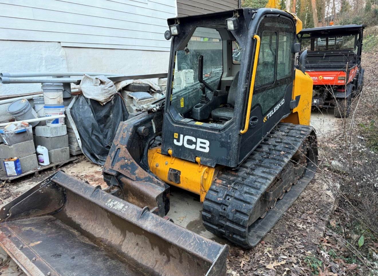 2020 JCB 3TS-8T Teleskid, 1,650 Hours, Cab, heat and AC, High Flow, Two Speed, Quick attach, 83in Bucket, 18in Rubber Tracks with good life, 74HP, needs front glass, runs and operates as it should.