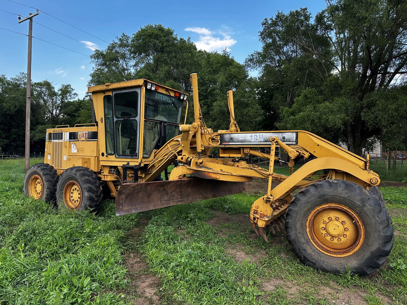 Cat 12H Motor Grader, Cab, Heat, A/C, Differential Lock,14 ft / 4.27 m Moldboard, Mid Mount Scarifier, 14.00R24 Tires, original 8,100 Hours, Tight, No leaks, well maintained, Excellent condition.