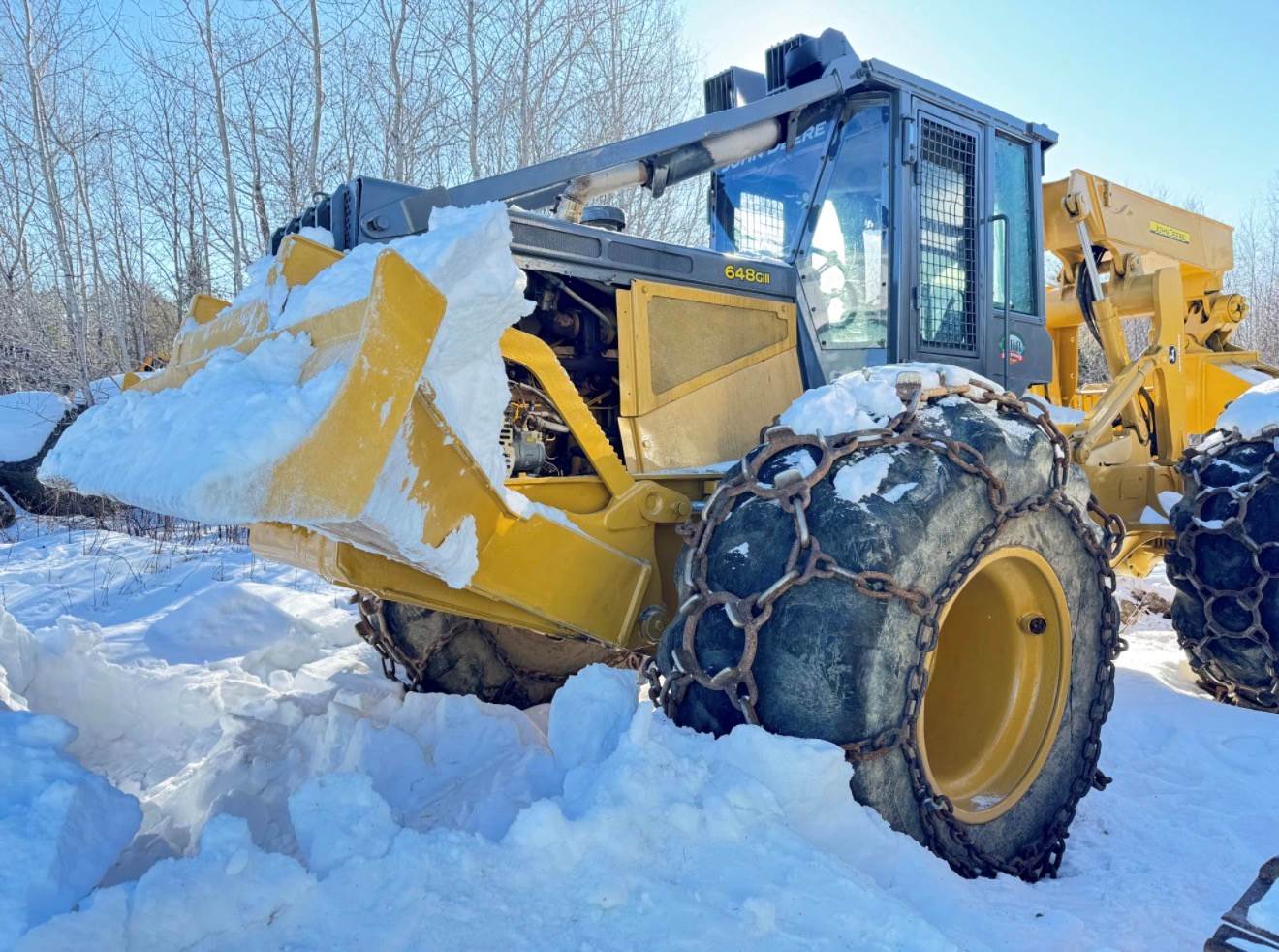John Deere 648G III, Cab, Engine rebuilt 1500 hours ago, Meter reads 10k hrs, 30.5L-32 tires w/ chains, Good condition, Runs and operates great